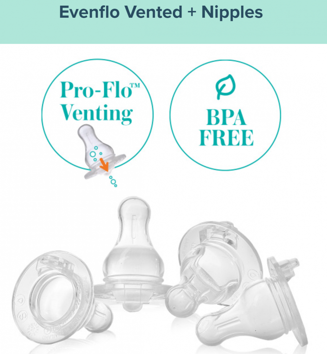CÁC BÌNH SỮA DÒNG CAO CẤP CỦA EVENFLO ĐỀU SỬ DỤNG NÚM TI VAN KHÍ PRO-FLO ĐỘC QUYỀN CỦA PUR: