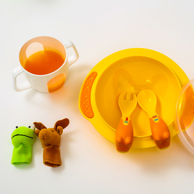 Các sản phẩm có hình con hải mã bao gồm: bộ đĩa ăn, bộ chén ăn, ly tập uống, yếm nhựa.
